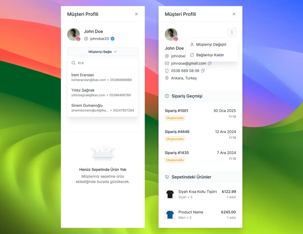 Instagram’dan yazan müşteriler, daha önce mağazanızdan alışveriş yaptıysa otomatik olarak müşteri profilinizle eşleştirilebilir.